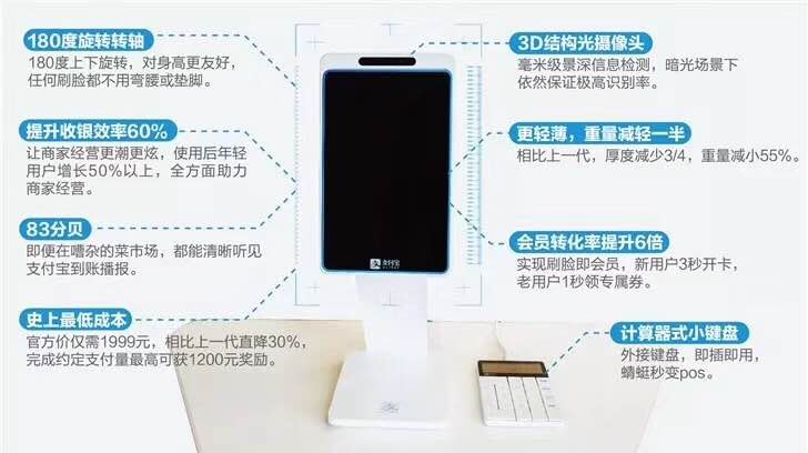 2、節(jié)省時間,更快捷:刷臉付款要比掃碼付款快捷許多,用戶不再需要掏出手機(jī)打開二維碼或者輸入密碼,整個過程不會超過15秒。同時由于是自助操作,也免去了排隊(duì)的等待,即掃即付。另外,簡單快捷的操作,對于老人來說尤其好用。