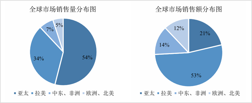 從銷量來看,亞太地區(qū)占新大陸數字支付終端銷量的半壁江山,合計約232萬臺;拉美地區(qū)緊隨其后,合計約146萬臺;中東非銷量約30萬臺;歐洲北美銷量約22萬臺。