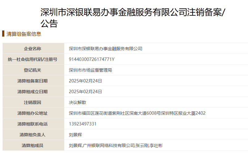 又一家支付機構(gòu)(深銀聯(lián)易辦事)決議解散!
