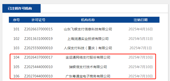 最新支付牌照被注銷消息,一次注銷三張
