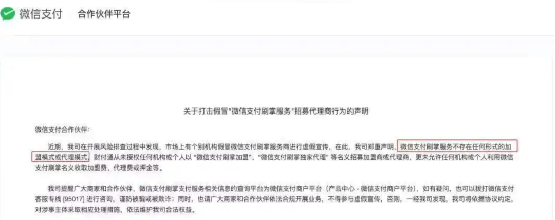 對此微信支付方面強調(diào),任何以"微信支付刷掌加盟"、"微信支付刷掌獨家代理"等名義收取代理及加盟費用的都是騙子。
