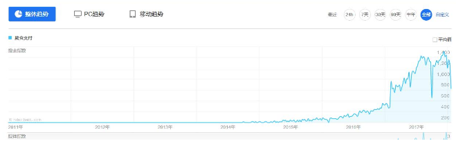 我們先來(lái)看下聚合支付的百度指數(shù)(百度指數(shù)不懂的可以百度下),在2017年前是幾乎是個(gè)空白,也就是這個(gè)時(shí)候聚合支付才起步,而且聚合指數(shù)的越來(lái)越高,意思就是互聯(lián)網(wǎng)對(duì)聚合指數(shù)的關(guān)注的人越來(lái)越多,說(shuō)明從整體來(lái)看這個(gè)行業(yè)在一個(gè)向上增長(zhǎng)的趨勢(shì)。
